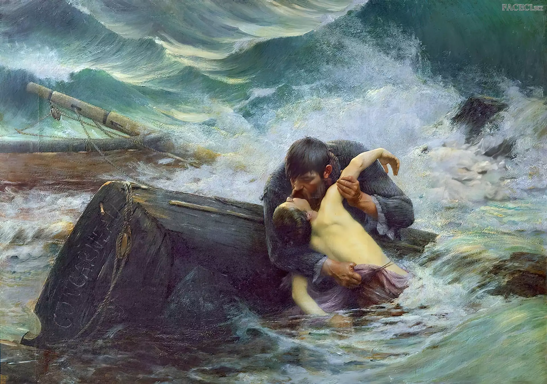 Obrazu, Reprodukcja, Fale, Morze, Łódź - faceci.biz